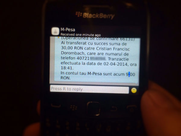 M-Pesa este accesibil pe orice telefon mobil. Acesta este marele avantaj, pe care il vad eu. Atentie! Functioneaza doar intre utilizatorii Vodafone (abonament sau cartela) si doar daca serviciul a fost activat in prealabil. Crearea unui cont se face foarte simplu intr-un magazin Vodafone sau la parteneri. Activarea se face prin apel la *789#.