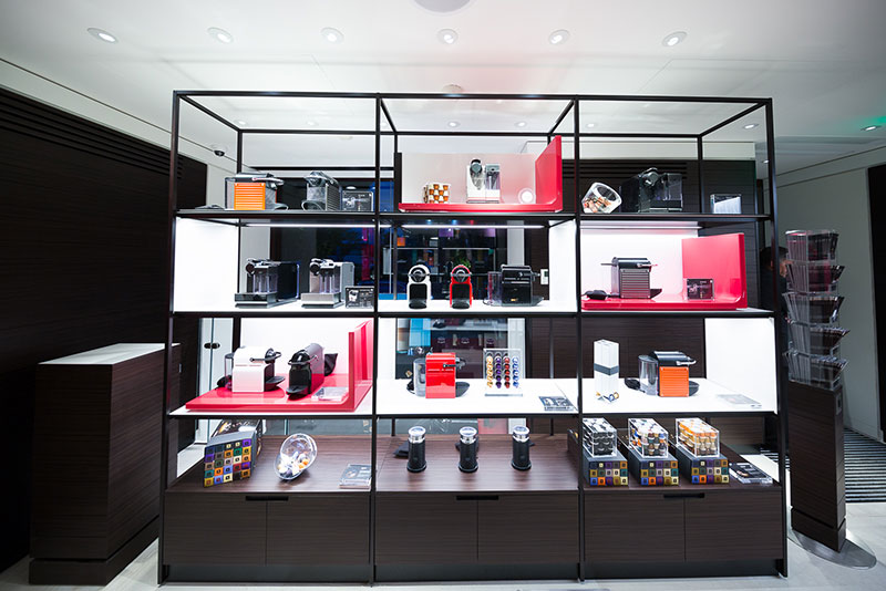 Brand-ul Nespresso intră în segmentul produselor de lux, căutând să transmită poziționarea premium de la procesul de fabricație a cafelei până la vânzarea în magazin. În Nespresso Boutique, vei găsi trei tipuri de aparate de cafea (Innisia, Pixie și Lattissima), cu prețuri ce variază între 440 și 1500 lei, o ofertă variată de cești în diverse mărimi și ustensile pentru preparat cafeaua, suporturi pentru pastilele de cafea și un aparat de spumă de lapte (300 lei), alături de cutii cu zahăr și un kit de decalcifiere.