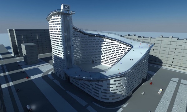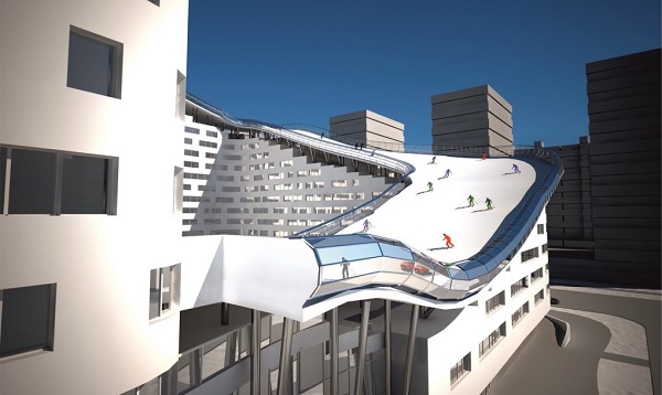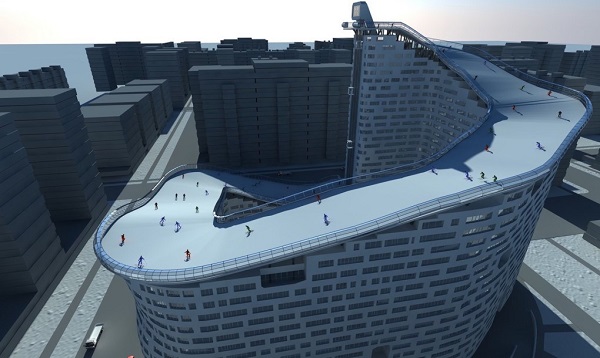 Vorbim oricum de o idee, de un proiect, șansele ca “pârtia pe bloc” să devină realitate fiind destul de mici. Costurile construirii clădirii se ridică la 70 de milioane de dolari.