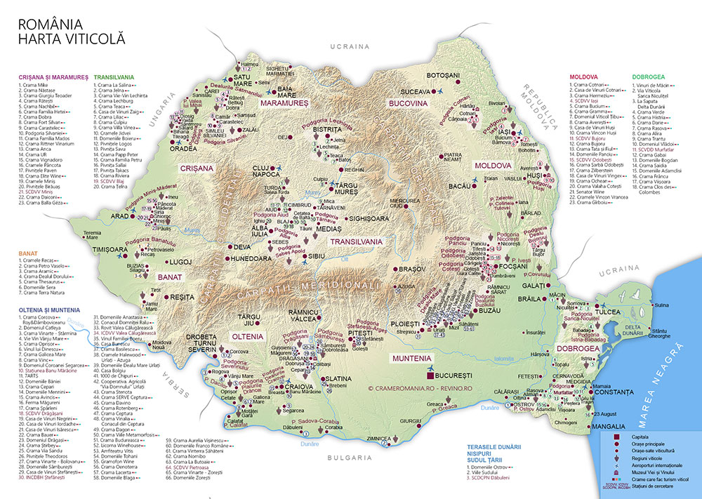 Harta viticolă a României are rolul a identifica zonele distincte din România, dar și de a-i ghida pe turiști să găsească mai ușor crama pe care doresc să o viziteze. Harta conține o listă actualizată cu podgoriile și cramele locale, fie că sunt mai mari sau mai mici.